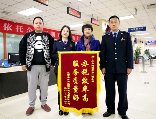 近日,丰台局第二税务所收到北京丰台科技园建设发展有限公司送来的题为“办税效率高服务质量好”的锦旗,对该税务所干部在集中办理房产契税过程中提供的高效、热情、周到的服务表示感谢。